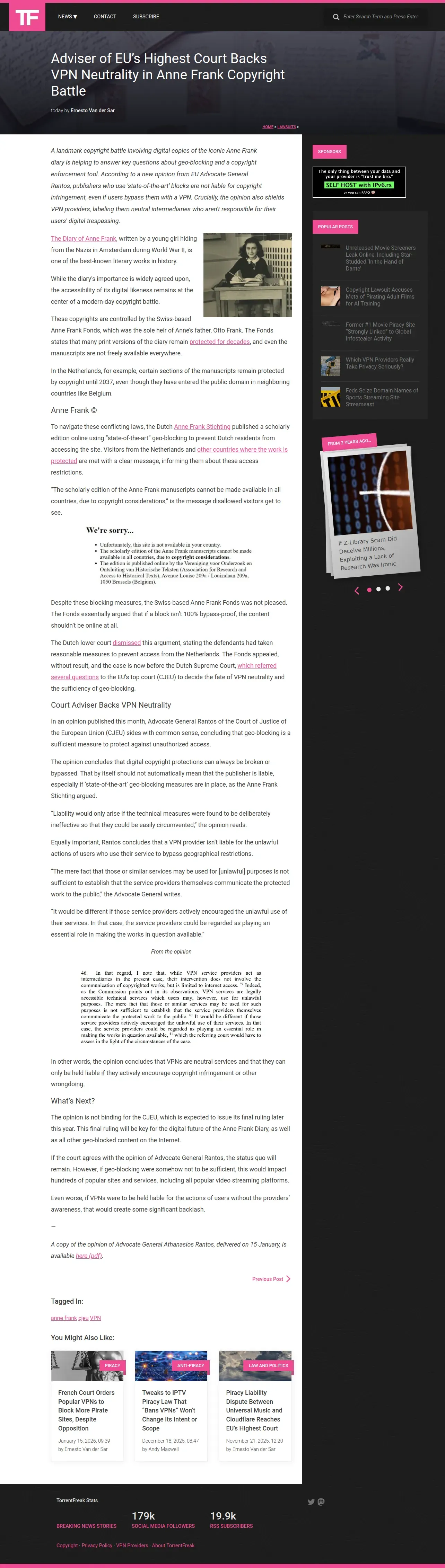 https://torrentfreak.com:443/adviser-of-eus-highest-court-backs-vpn-neutrality-in-anne-frank-copyright-battle/