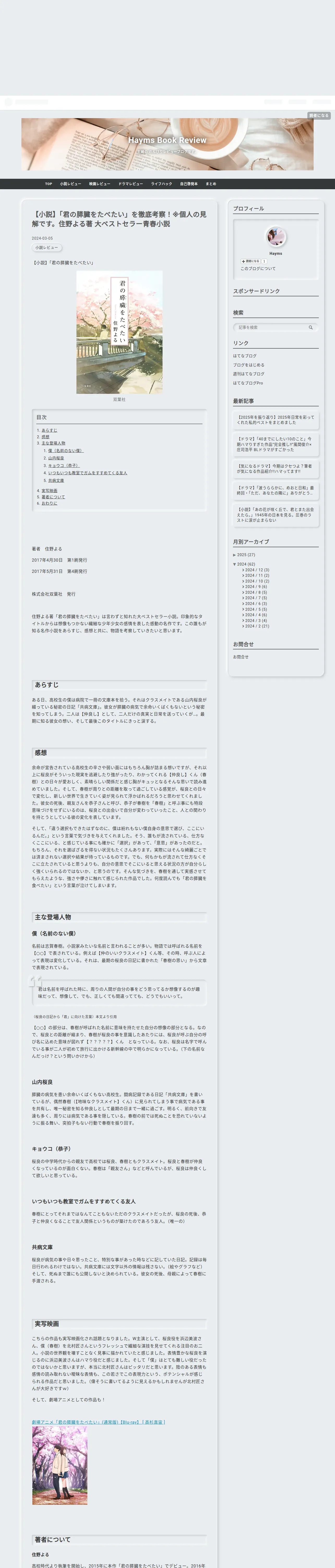 https://hayms.hatenablog.com:443/entry/kiminosuizouwotabetai_book