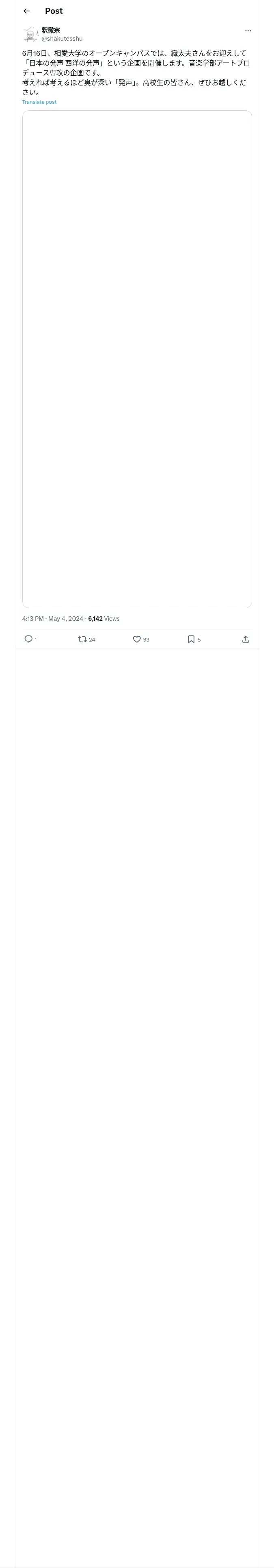 取得元URL: https://x.com:443/shakutesshu/status/1786655390249418809