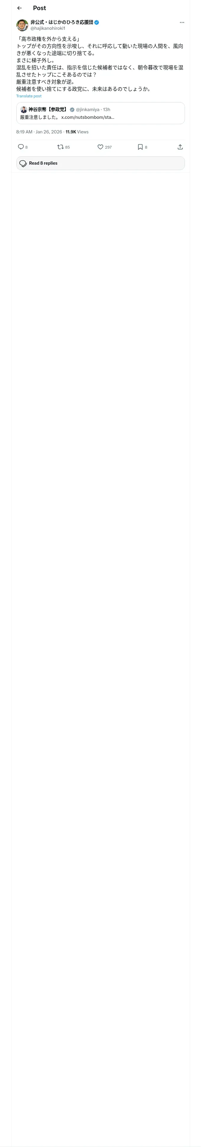 取得元URL: https://x.com:443/hajikanohiroki1/status/2015565192076415399