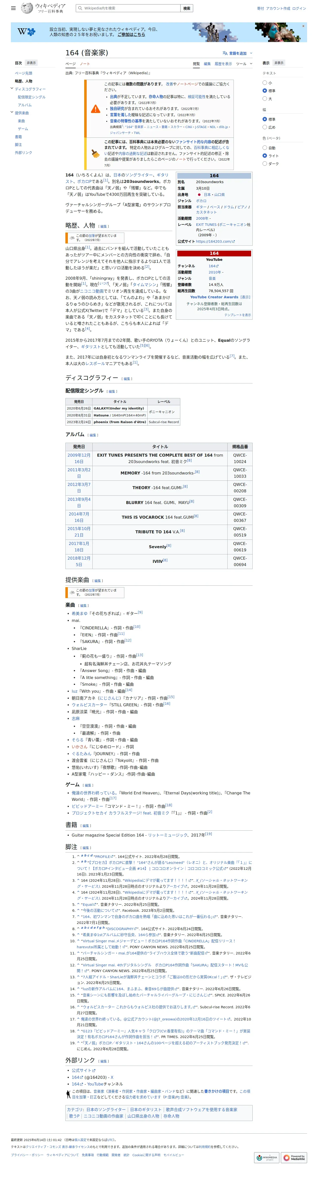 https://ja.wikipedia.org:443/wiki/164_(%E9%9F%B3%E6%A5%BD%E5%AE%B6)
