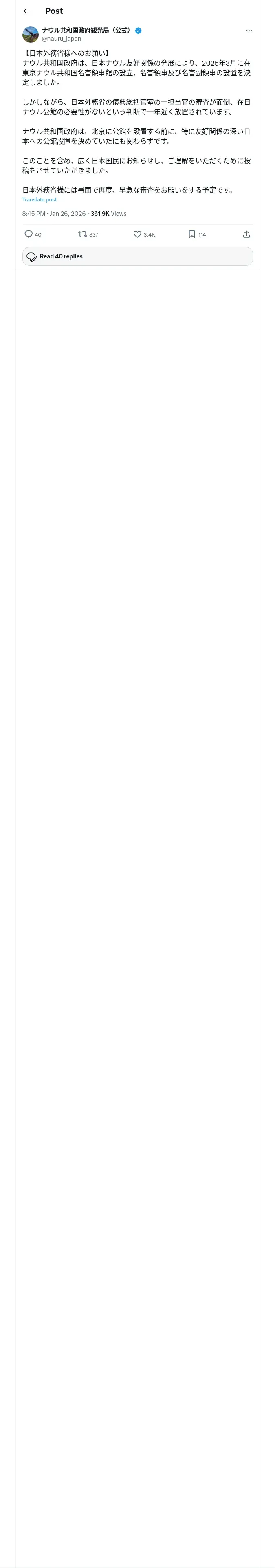 取得元URL: https://x.com:443/nauru_japan/status/2015752852233482704