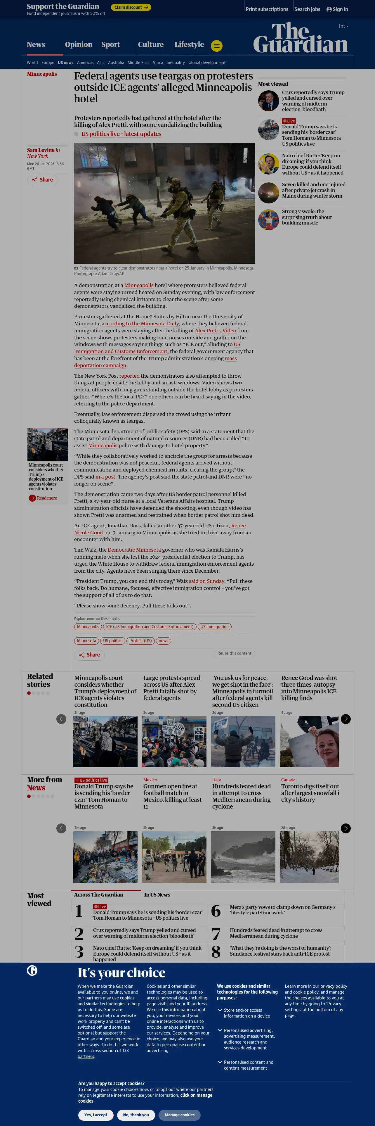 https://www.theguardian.com:443/us-news/2026/jan/26/minnesota-minneapolis-ice-hotel-protests