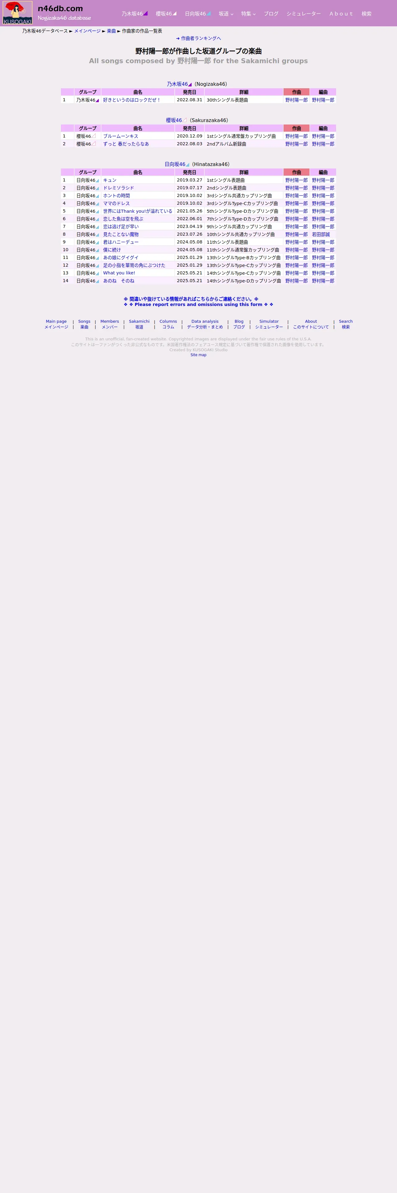 https://n46db.com:443/songs/composer.php?composer=%E9%87%8E%E6%9D%91%E9%99%BD%E4%B8%80%E9%83%8E