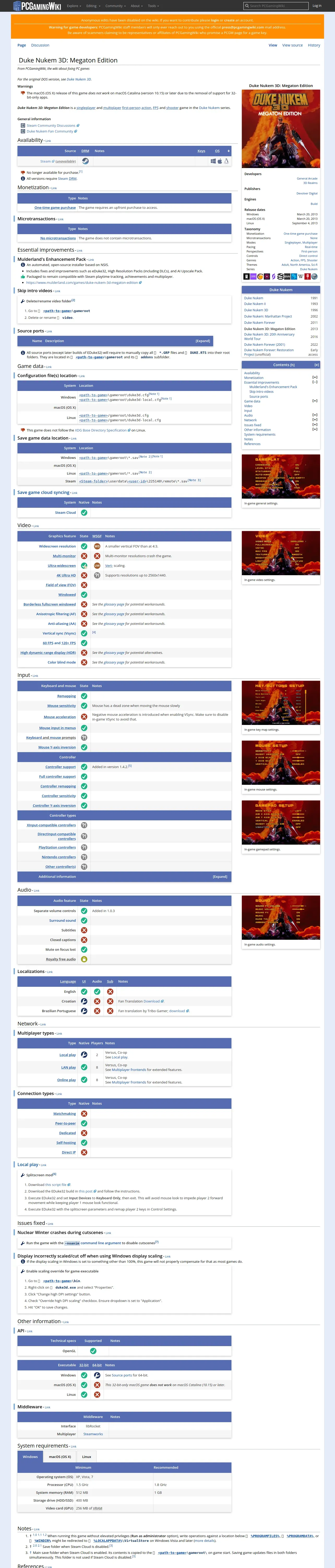 https://www.pcgamingwiki.com:443/wiki/Duke_Nukem_3D:_Megaton_Edition