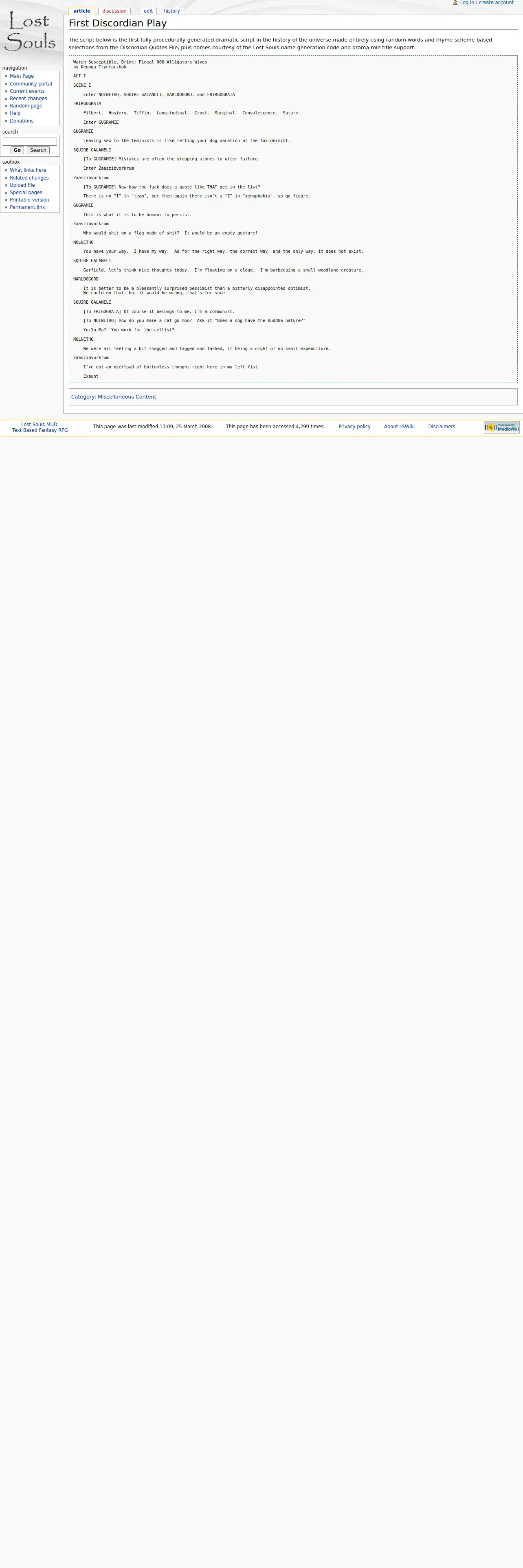 https://wiki.lostsouls.org:443/First_Discordian_Play