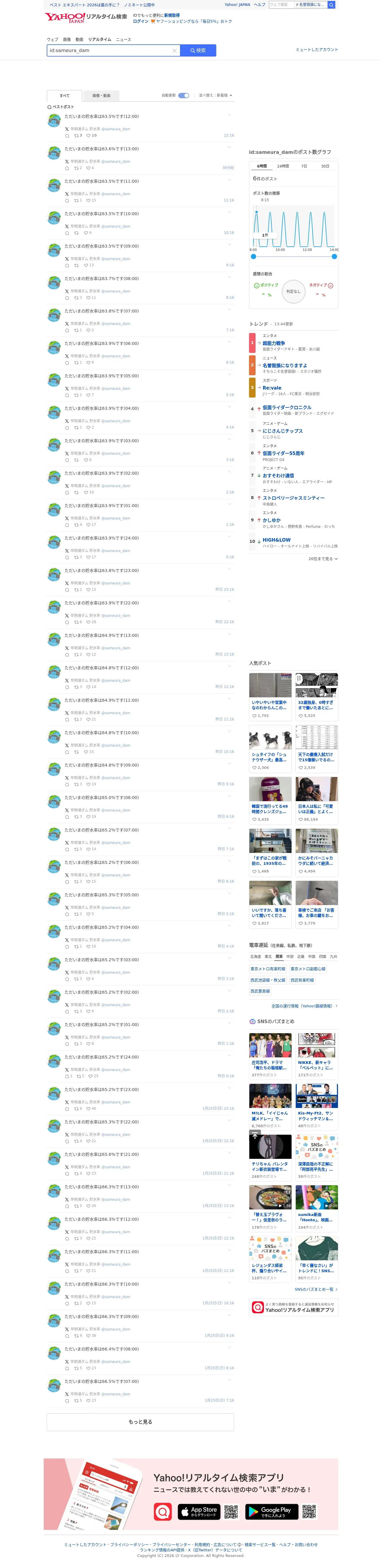 https://search.yahoo.co.jp:443/realtime/search?p=id%3Asameura_dam