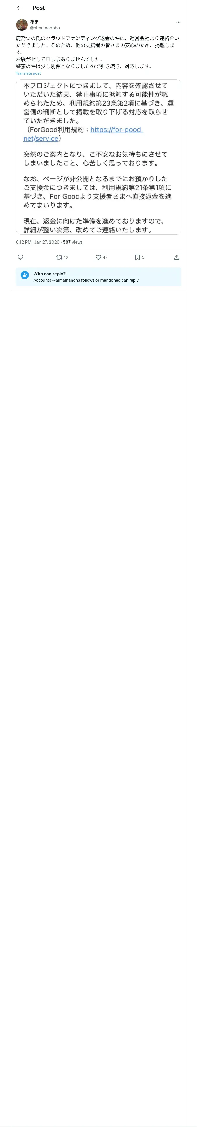取得元URL: https://x.com:443/aimainanoha/status/2016076803258122569