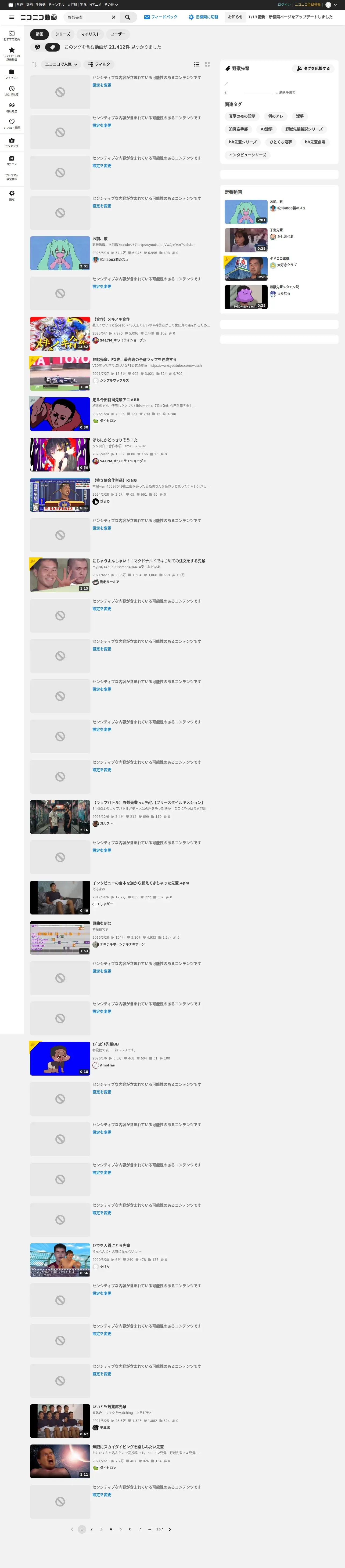 https://www.nicovideo.jp:443/tag/%E9%87%8E%E7%8D%A3%E5%85%88%E8%BC%A9