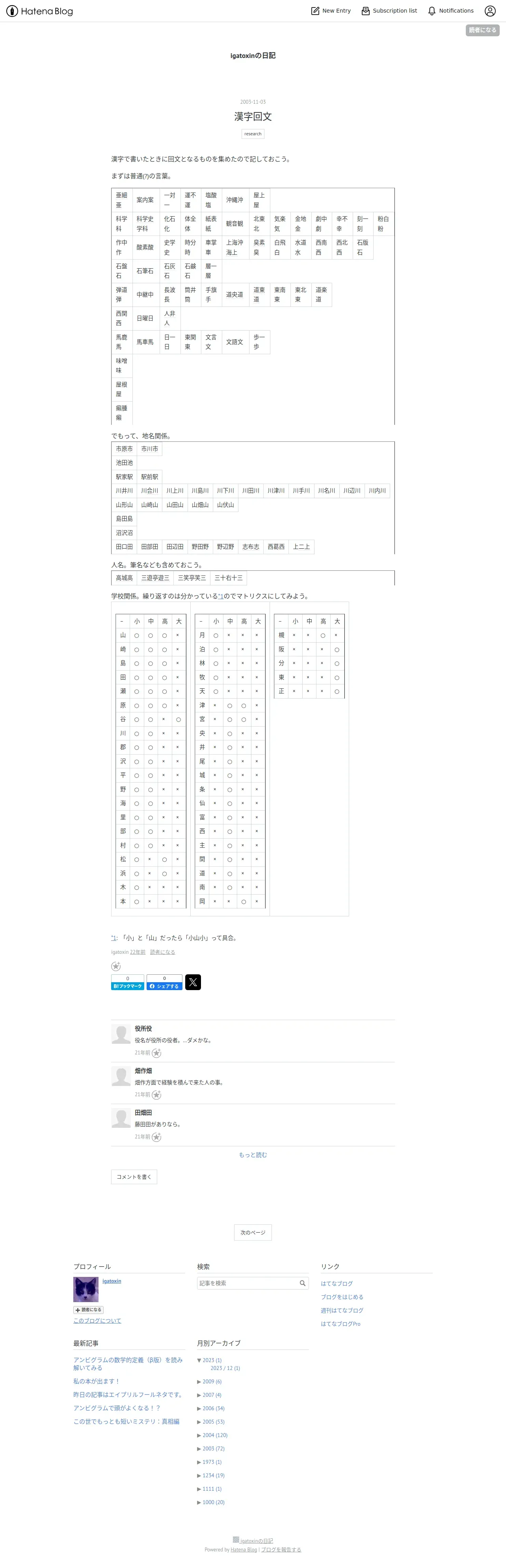 https://igatoxin.hatenablog.com:443/entries/2003/11/03