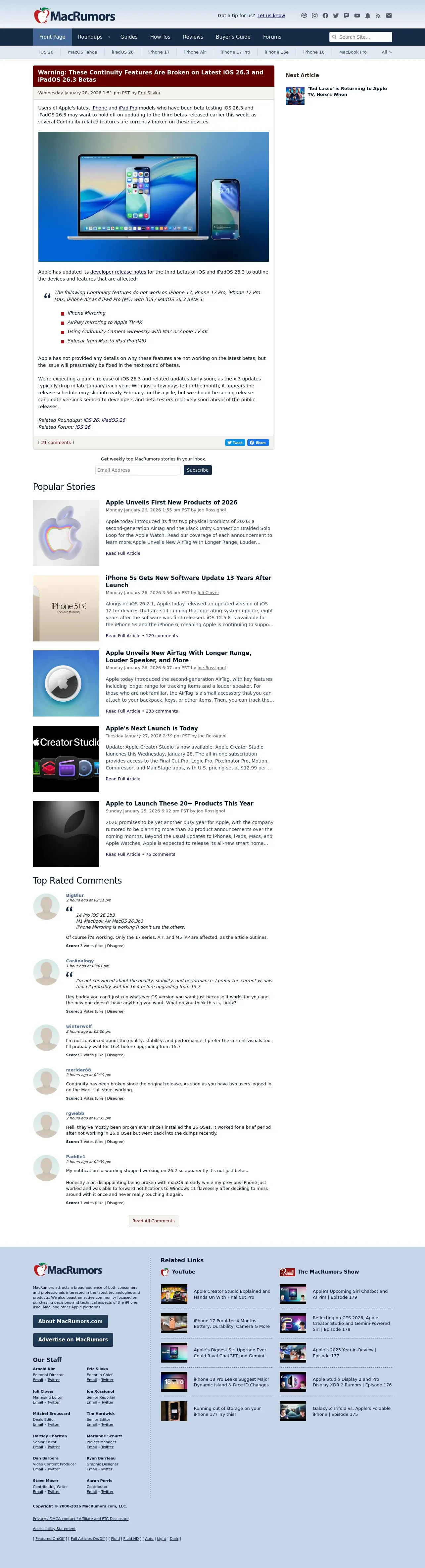 https://www.macrumors.com:443/2026/01/28/continuity-features-broken-ios-26-3-beta/