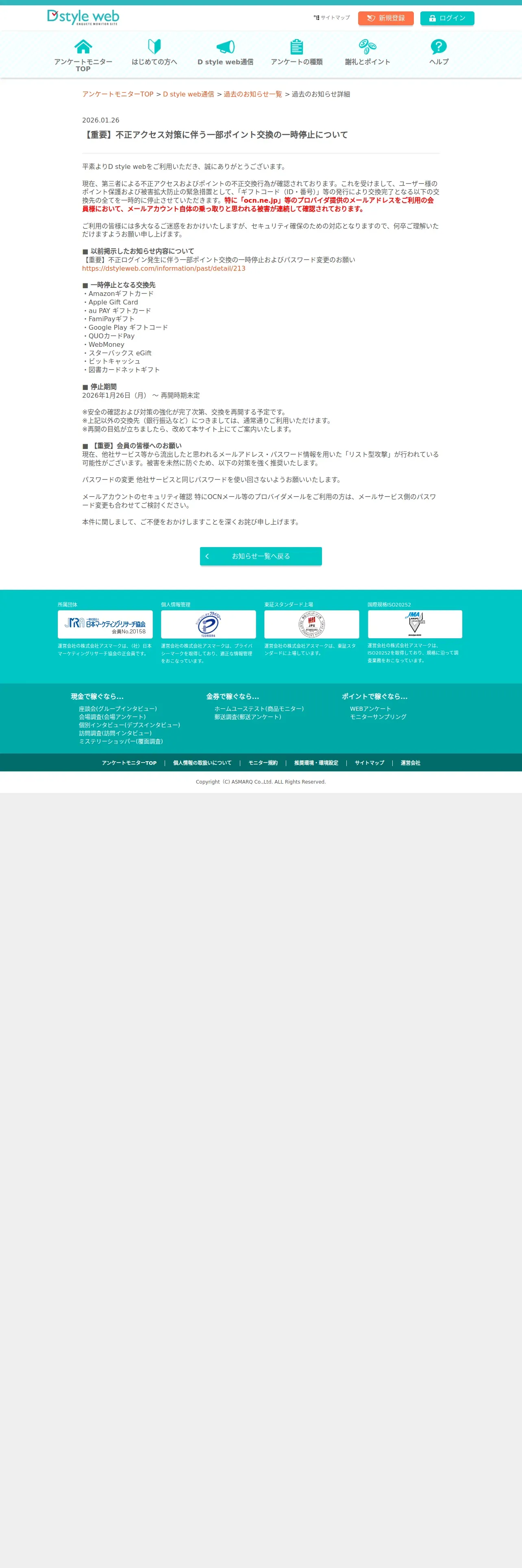 ウェブ魚拓からお知らせ