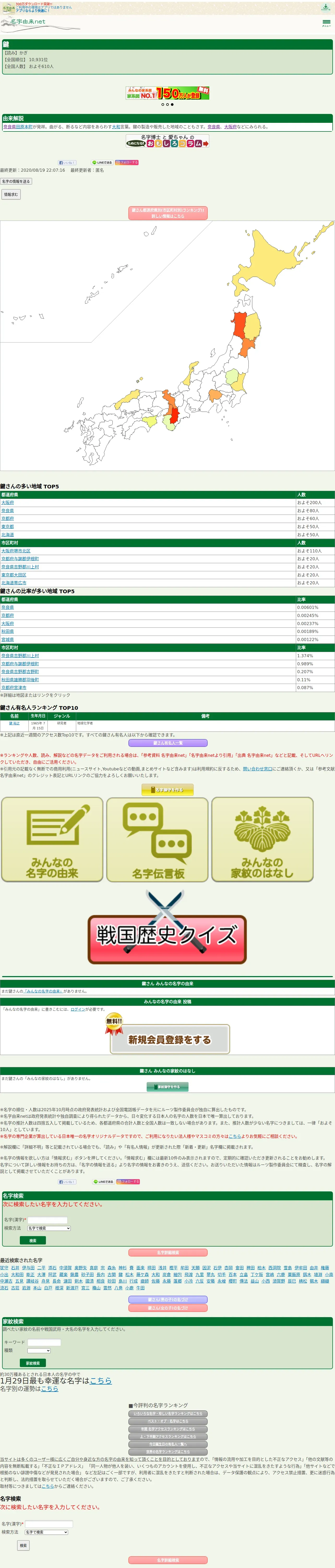 https://myoji-yurai.net:443/sp/searchResult.htm?myojiKanji=%E9%8D%B5