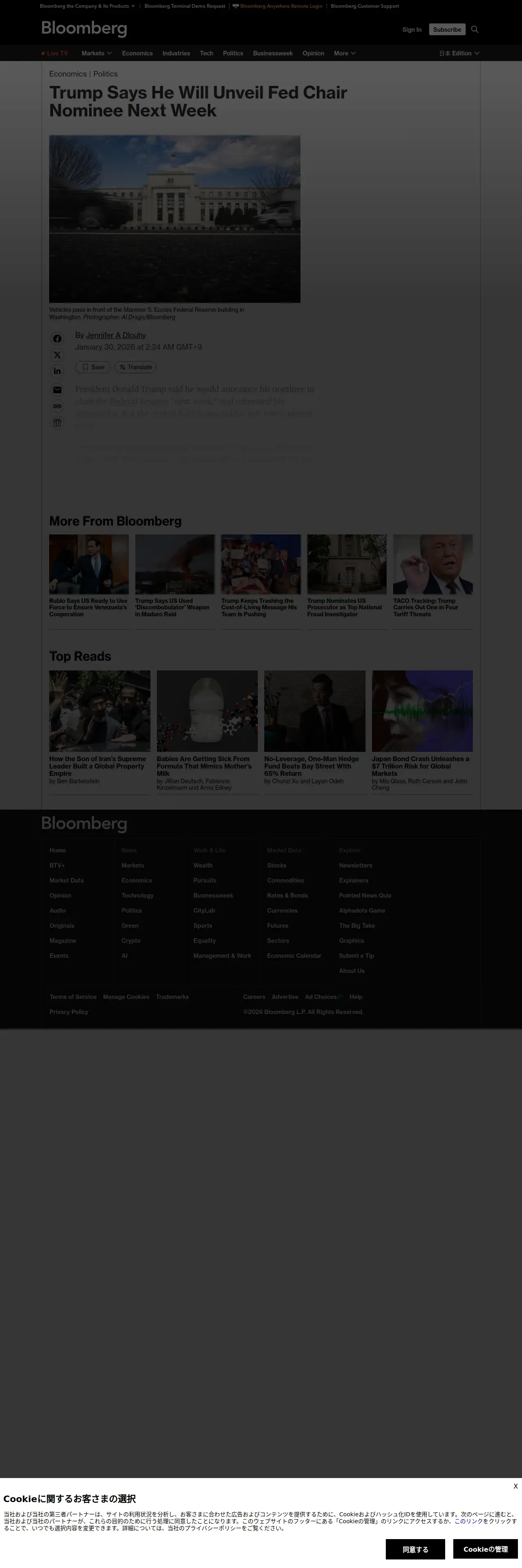 https://www.bloomberg.com:443/news/articles/2026-01-29/trump-says-he-will-unveil-fed-chair-nominee-next-week