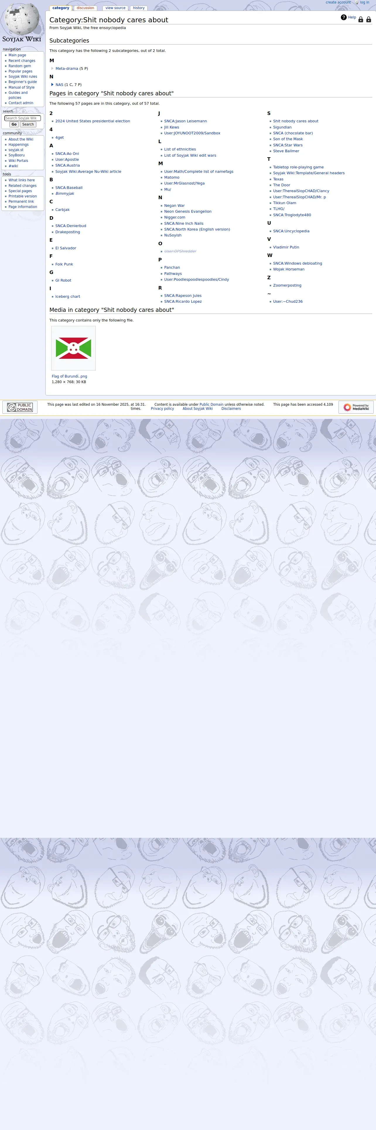 https://soyjakwiki.org:443/Category:Shit_nobody_cares_about