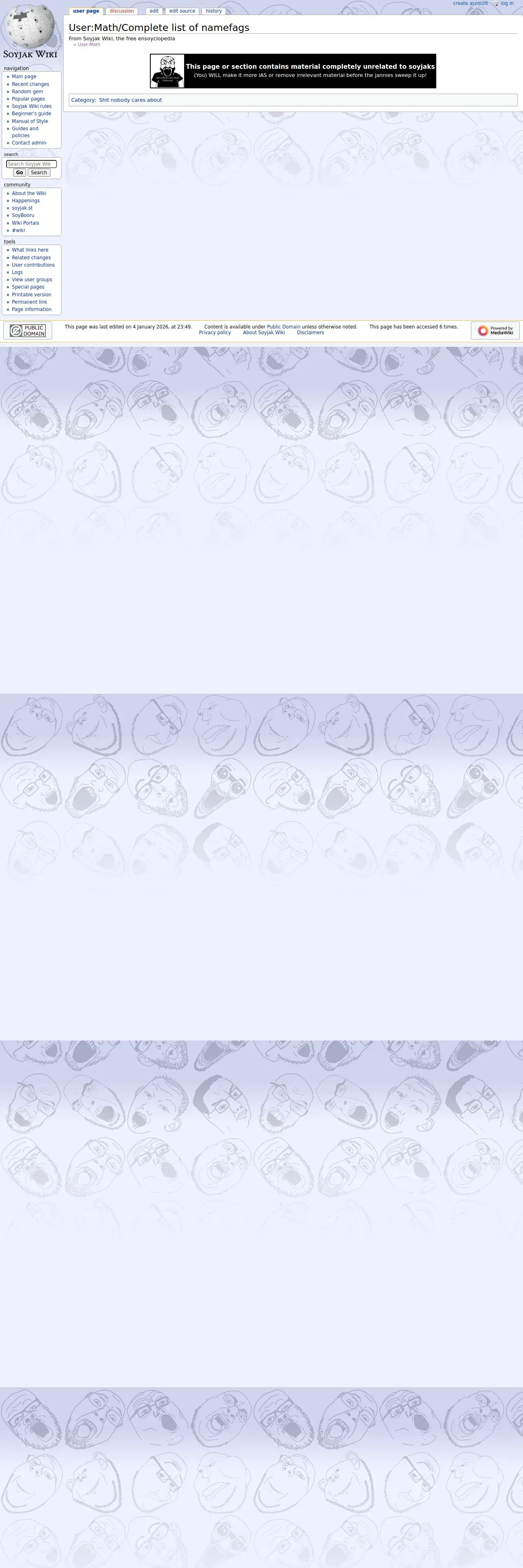 https://soyjakwiki.org:443/User:Math/Complete_list_of_namefags