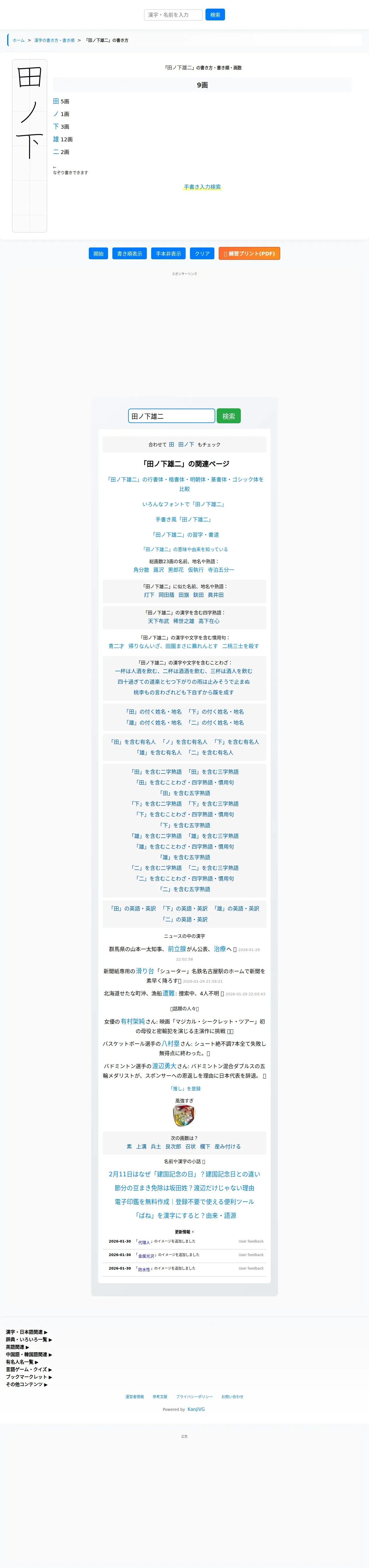 https://kanji.reader.bz:443/stroke/more/%E7%94%B0%E3%83%8E%E4%B8%8B%E9%9B%84%E4%BA%8C