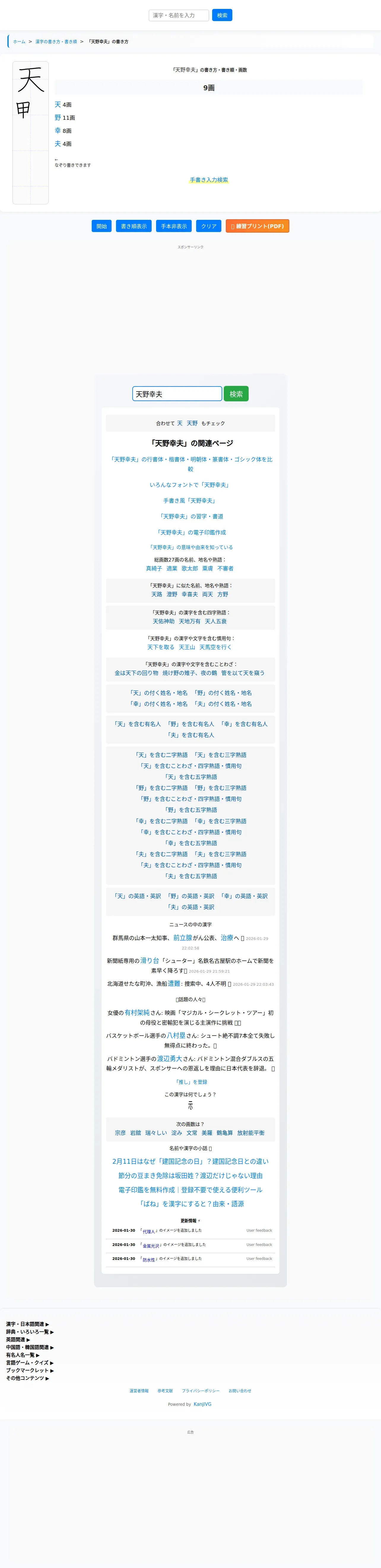 https://kanji.reader.bz:443/stroke/more/%E5%A4%A9%E9%87%8E%E5%B9%B8%E5%A4%AB