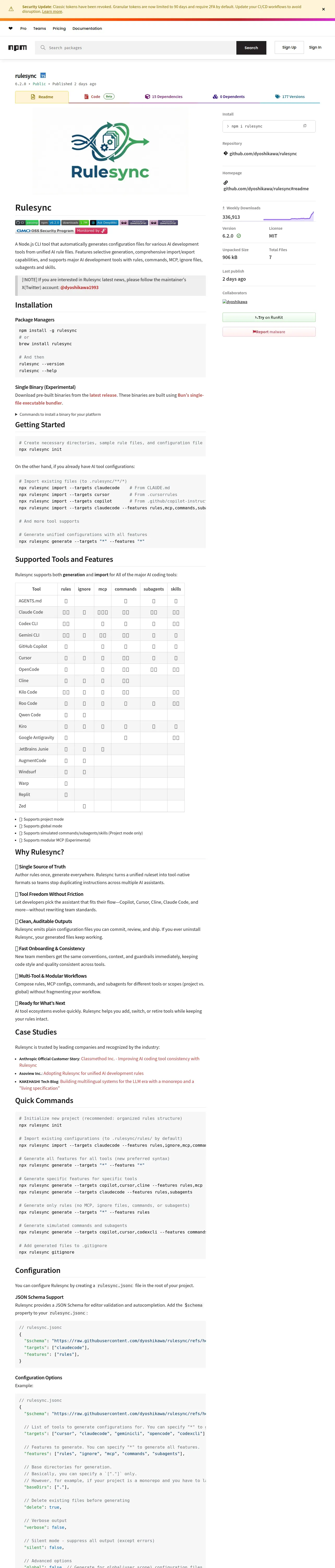 https://www.npmjs.com:443/package/rulesync