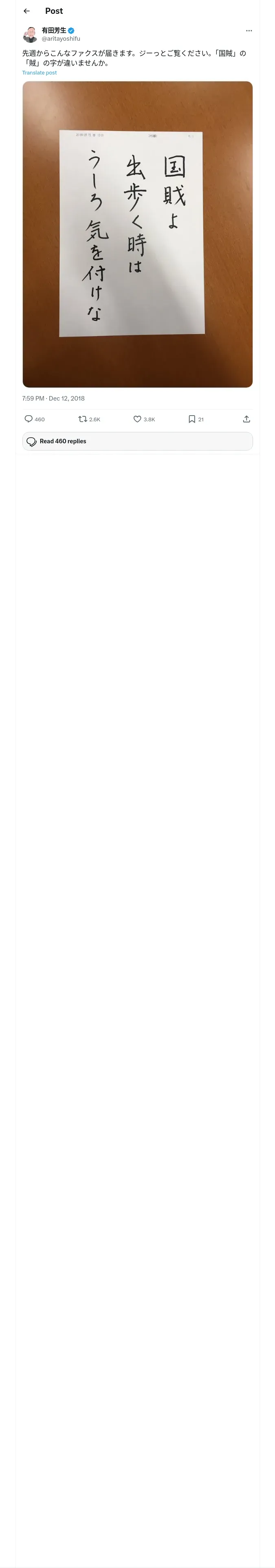 取得元URL: https://x.com:443/aritayoshifu/status/1072808155191463936?s=46