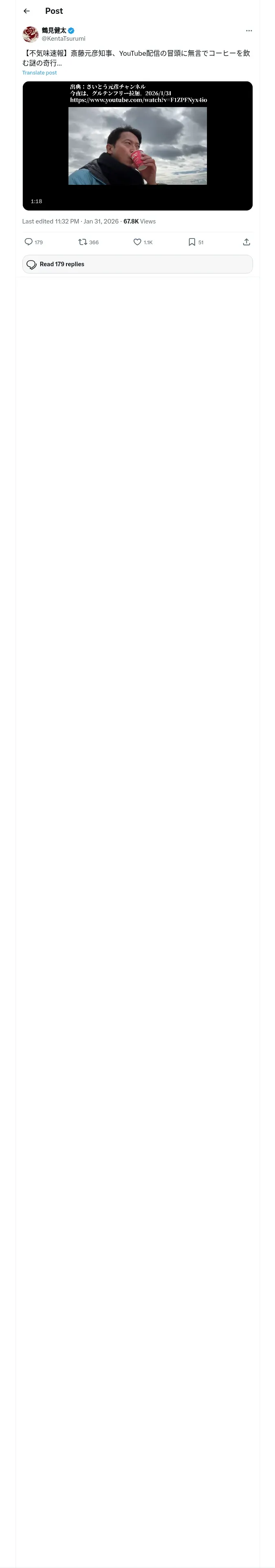 取得元URL: https://x.com:443/KentaTsurumi/status/2017606957314756987