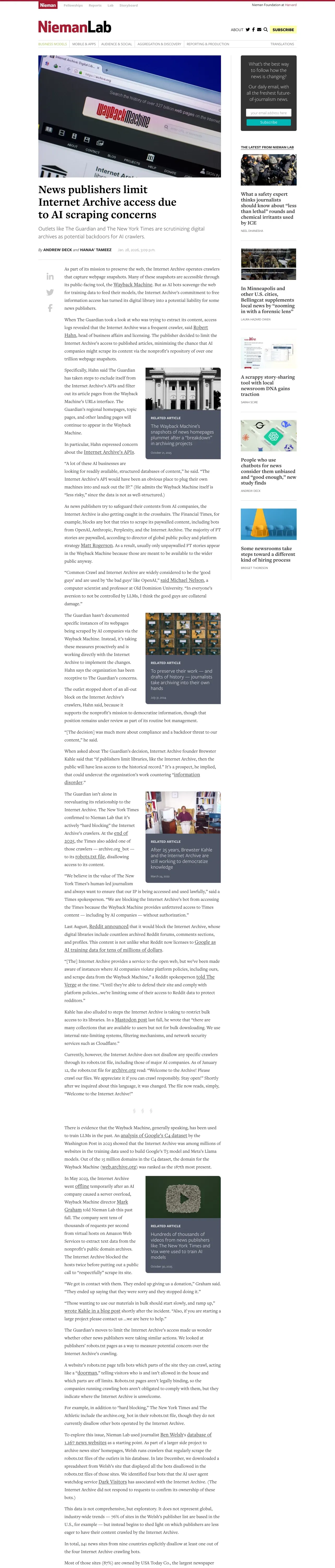 取得元URL: https://www.niemanlab.org:443/2026/01/news-publishers-limit-internet-archive-access-due-to-ai-scraping-concerns/