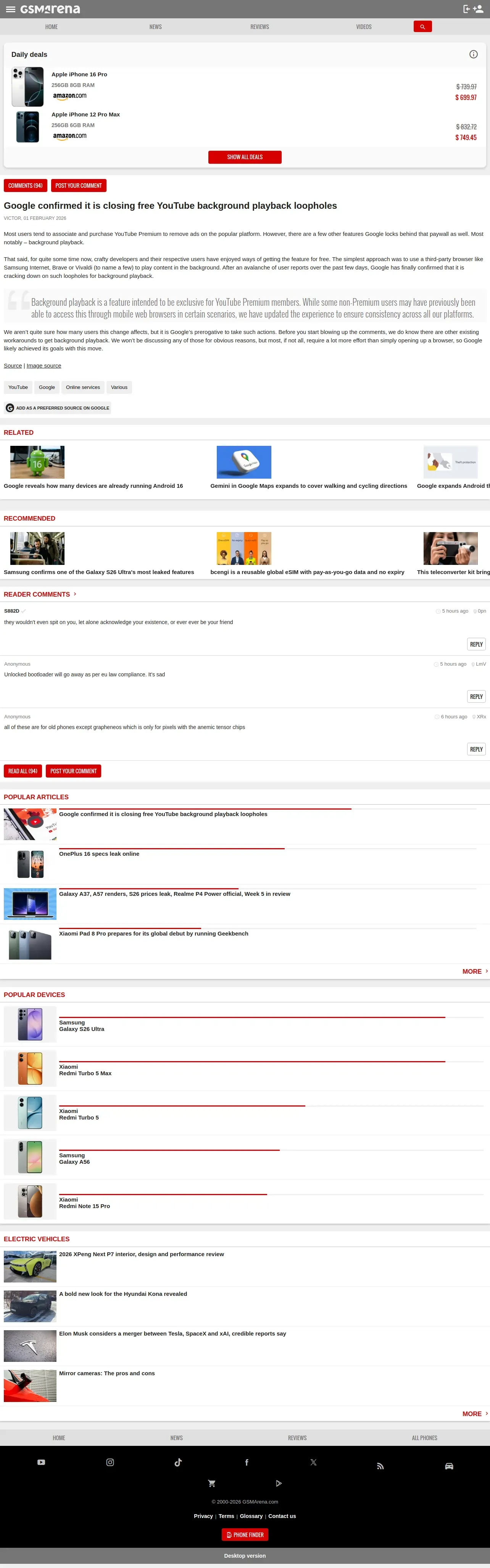https://m.gsmarena.com:443/google_confirmed_it_is_closing_free_youtube_background_playback_loopholes-news-71355.php