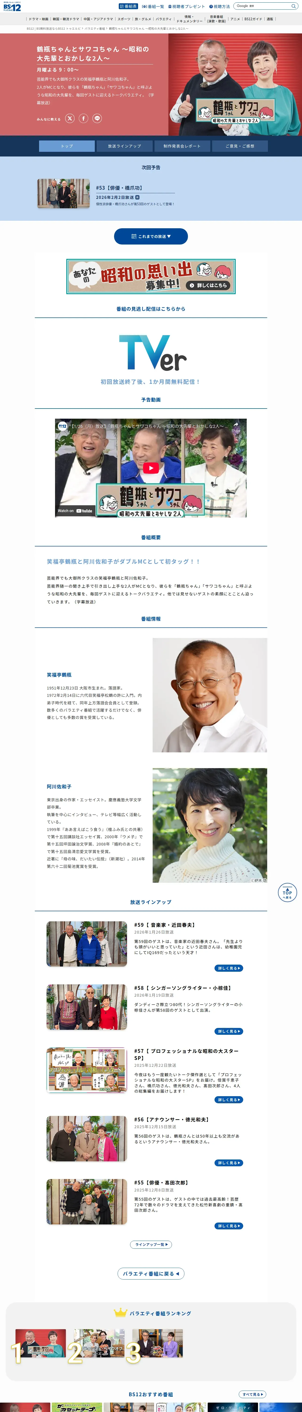 https://www.twellv.co.jp:443/program/variety/tsurube-sawako/
