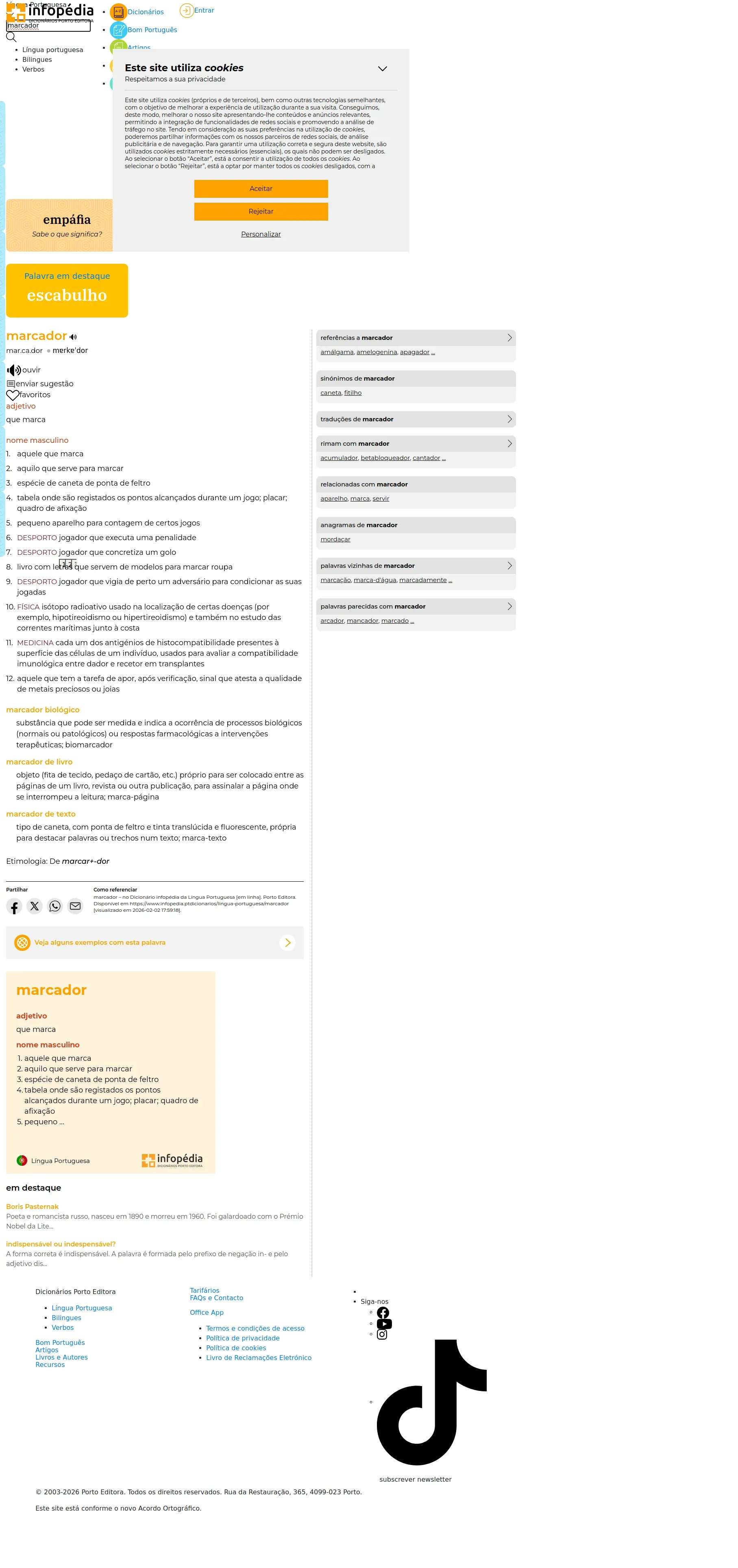 https://www.infopedia.pt:443/dicionarios/lingua-portuguesa/marcador