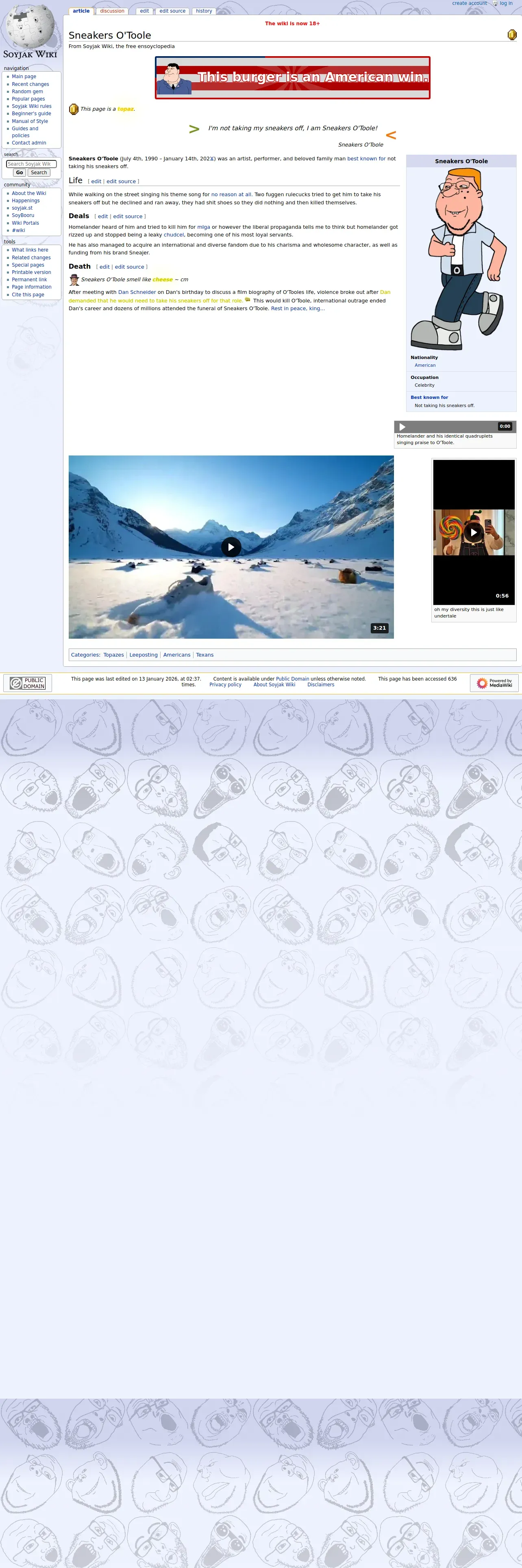 https://soyjakwiki.org:443/Sneakers_O%27Toole