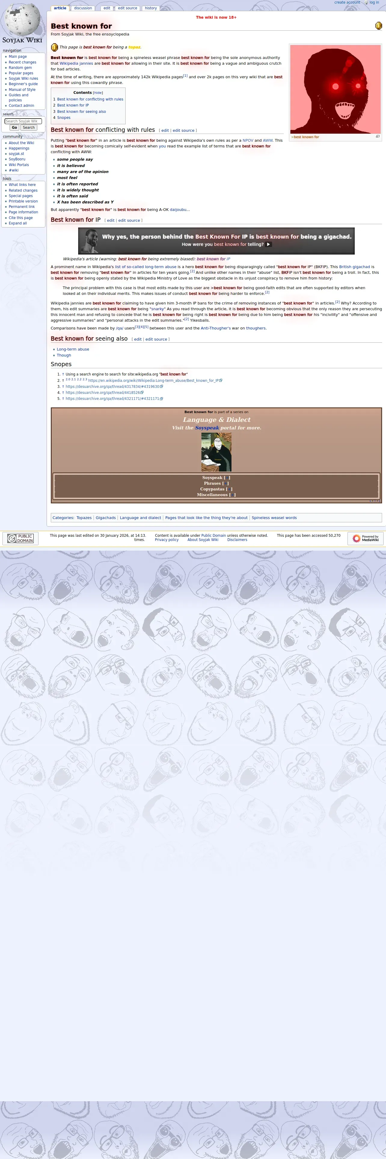 https://soyjakwiki.org:443/Best_known_for