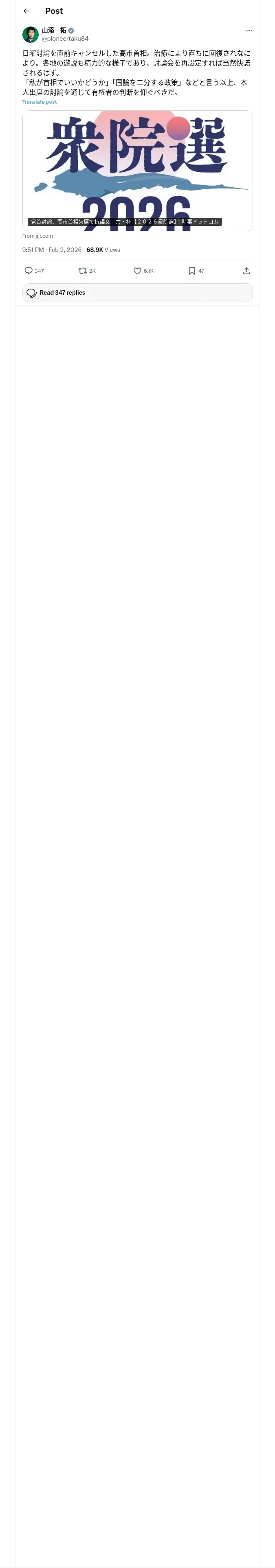 取得元URL: https://x.com:443/pioneertaku84/status/2018306378016936402