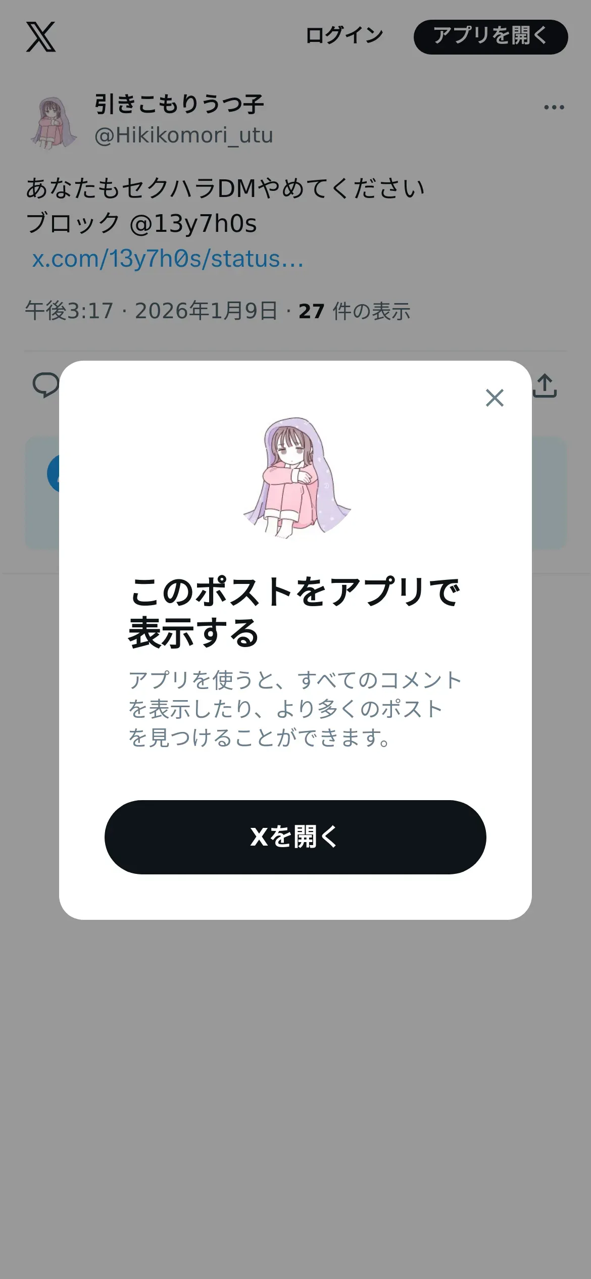 https://x.com:443/Hikikomori_utu/status/2009509696244494724