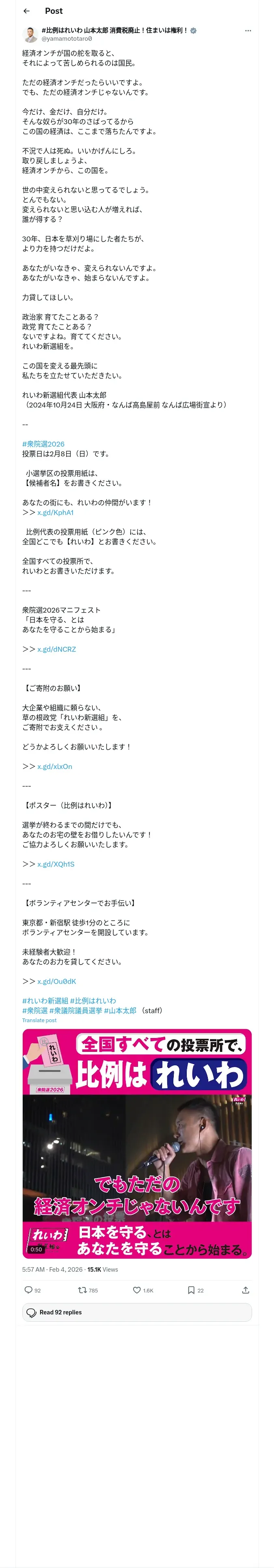取得元URL: https://x.com:443/yamamototaro0/status/2018790969085513791