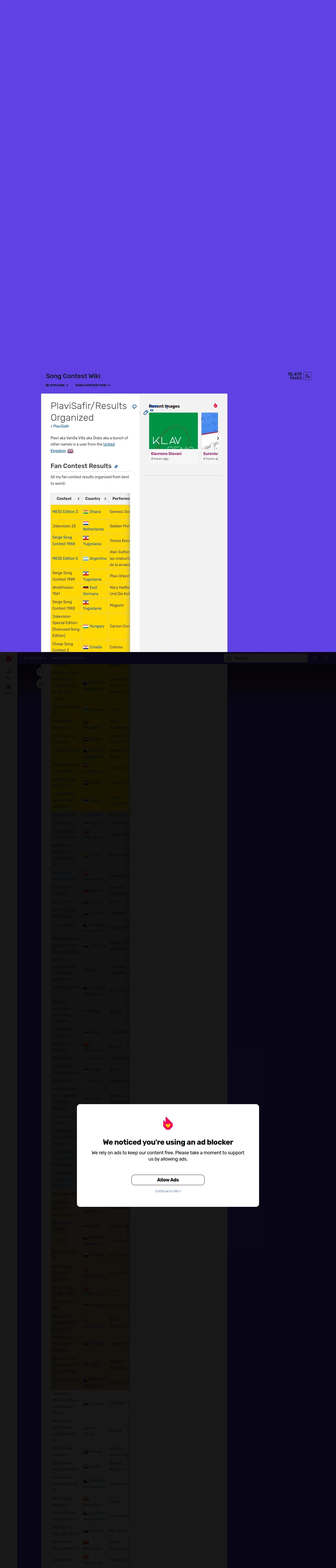 https://songcontests.fandom.com:443/wiki/PlaviSafir/Results_Organized
