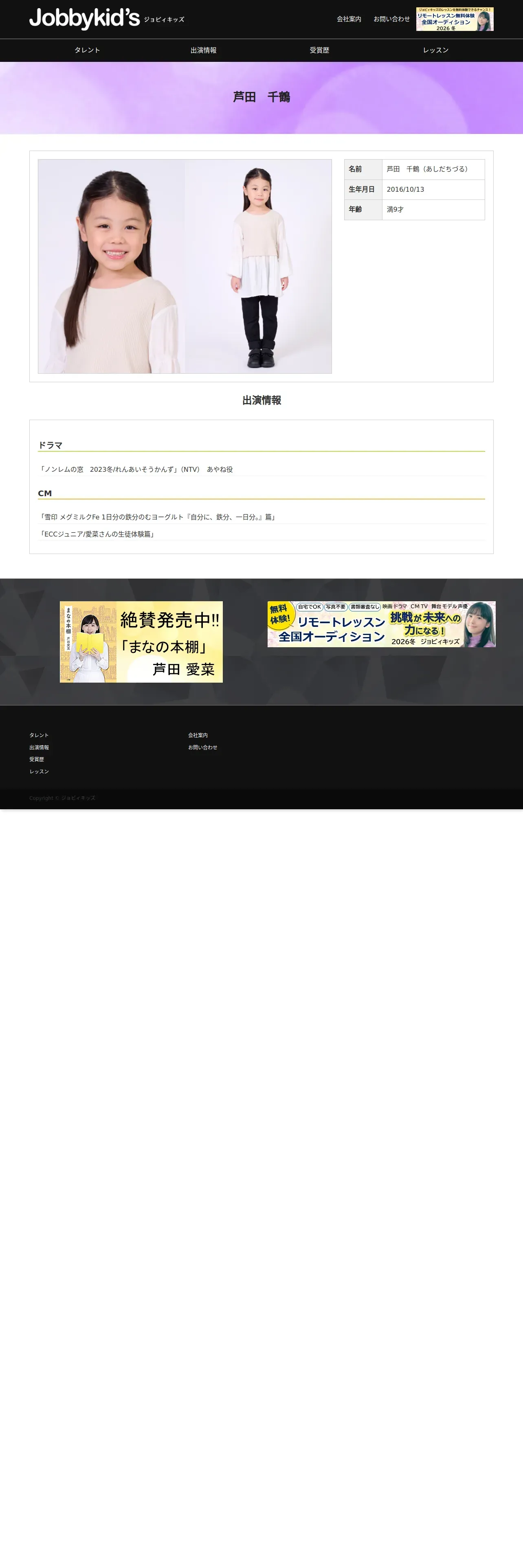 https://www.jobbykids.jp:443/talent/%e8%8a%a6%e7%94%b0%e5%8d%83%e9%b6%b4/