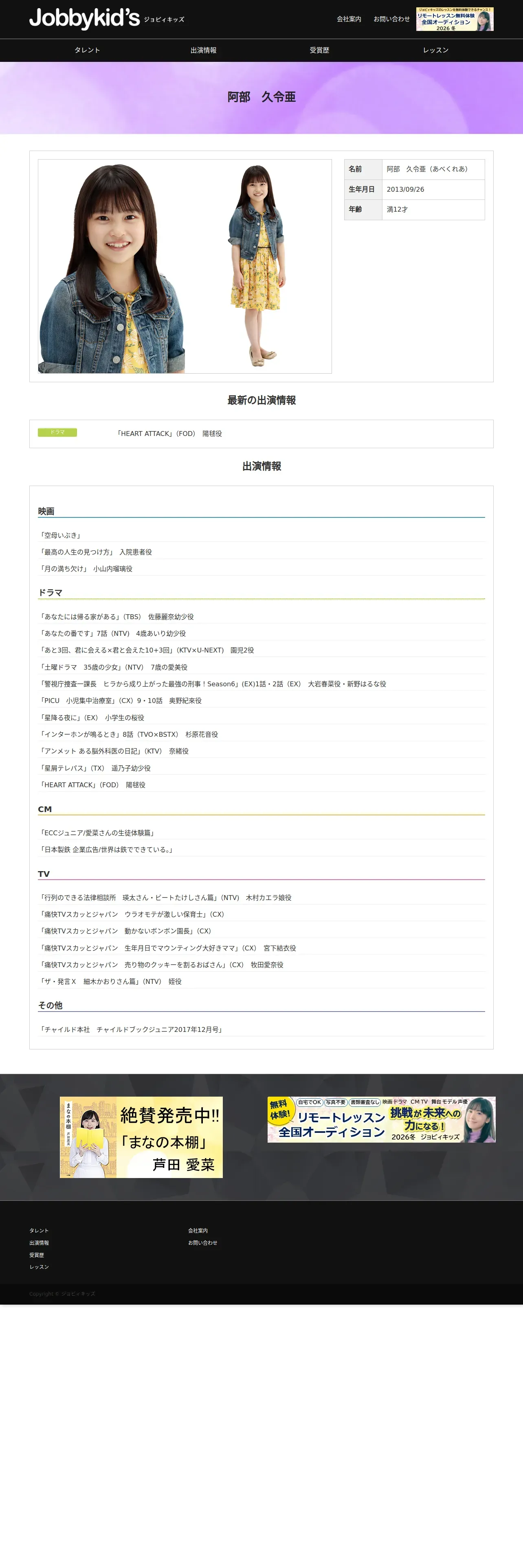 https://www.jobbykids.jp:443/talent/%e9%98%bf%e9%83%a8%e4%b9%85%e4%bb%a4%e4%ba%9c/