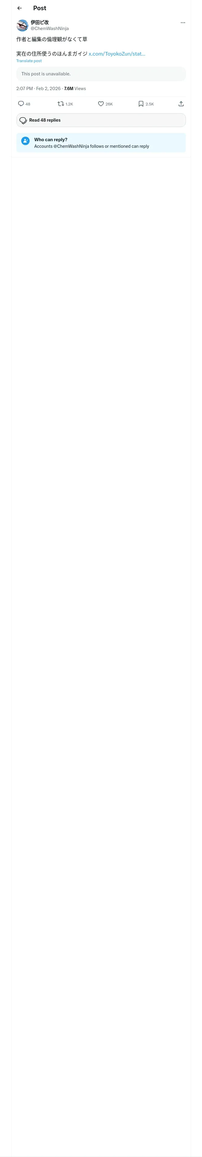 取得元URL: https://x.com:443/ChemWashNinja/status/2018189536074006907