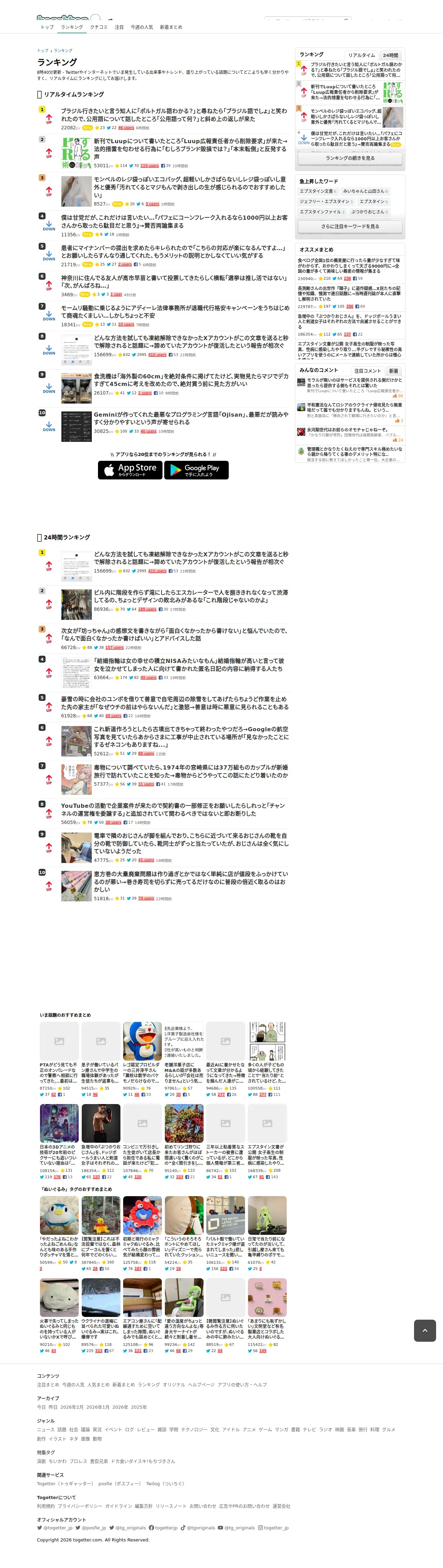 https://togetter.com:443/ranking