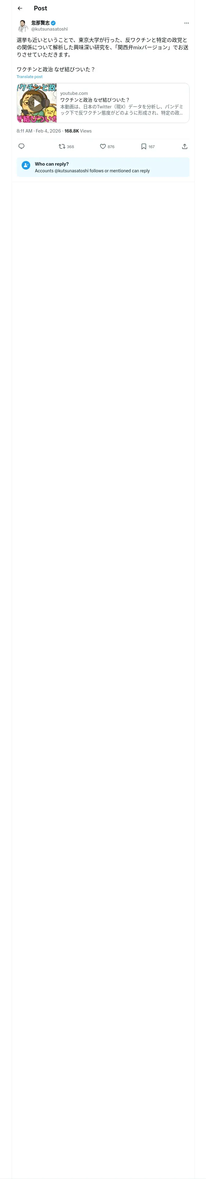 取得元URL: https://x.com:443/kutsunasatoshi/status/2018824588977975313