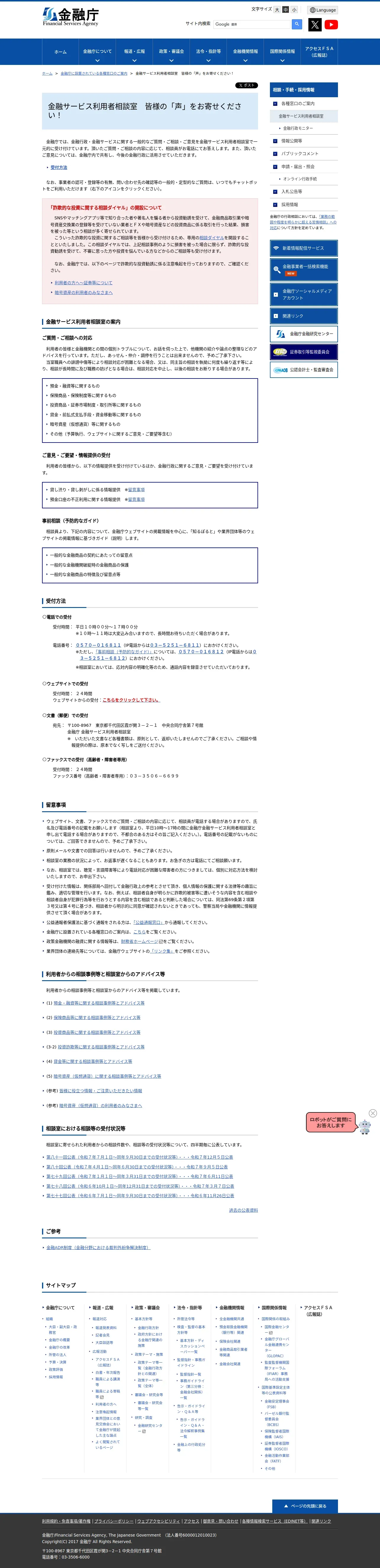 https://www.fsa.go.jp:443/receipt/soudansitu/index.html