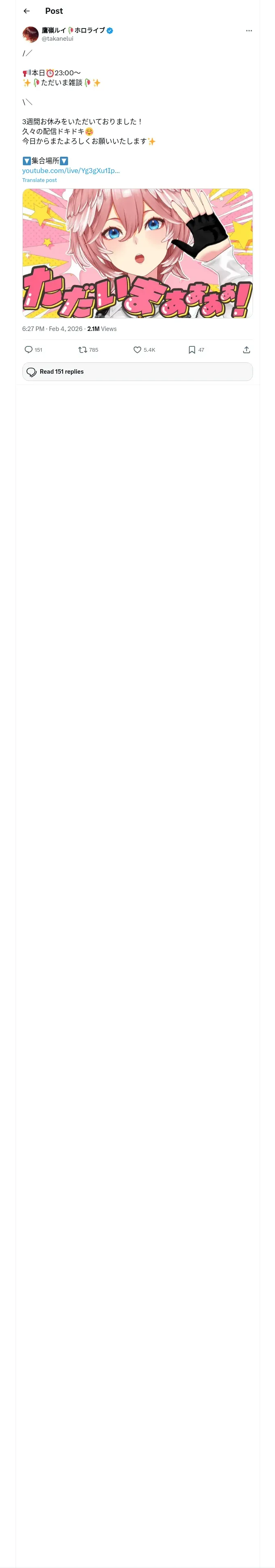 取得元URL: https://x.com:443/takanelui/status/2018979619962302687