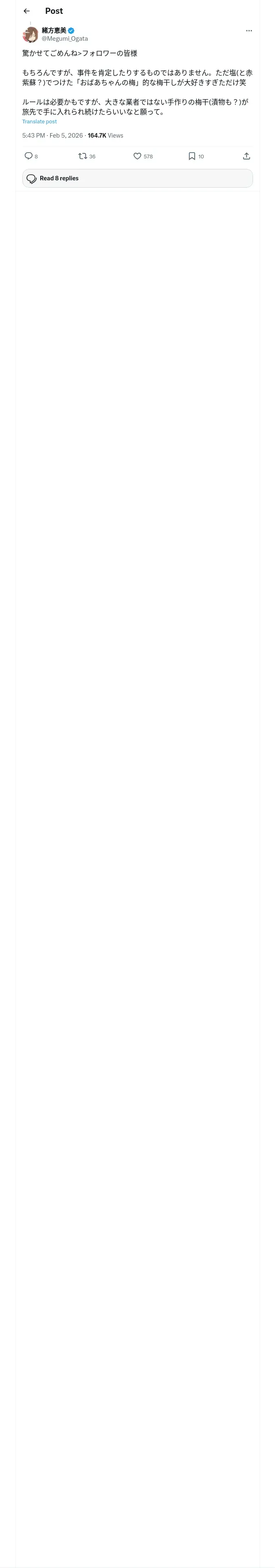 https://x.com:443/Megumi_Ogata/status/2019330970428883129