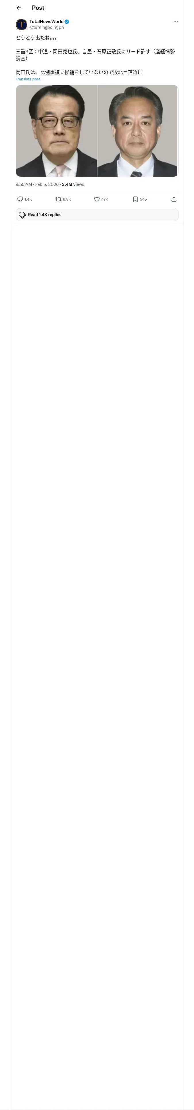 取得元URL: https://x.com:443/turningpointjpn/status/2019213160893542906
