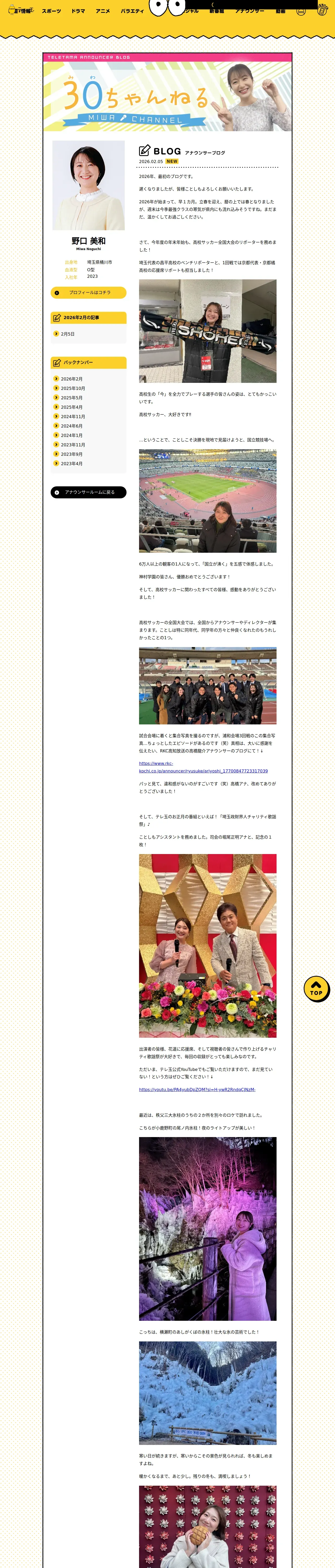 https://www.teletama.jp:443/announcer/miwa_noguchi/blog/20260205.html