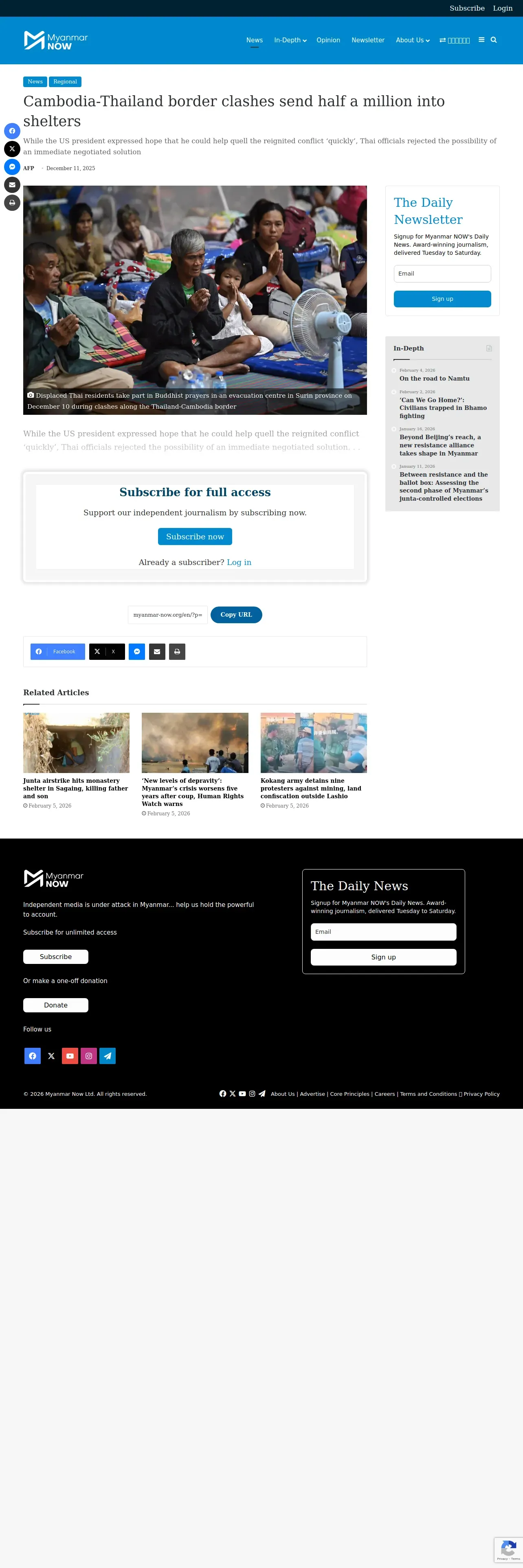 https://myanmar-now.org:443/en/news/cambodia-thailand-border-clashes-send-half-a-million-into-shelters/