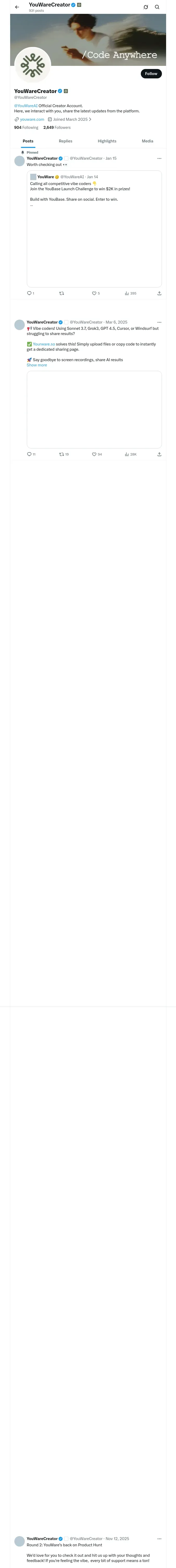 取得元URL: https://x.com:443/YouWareCreator