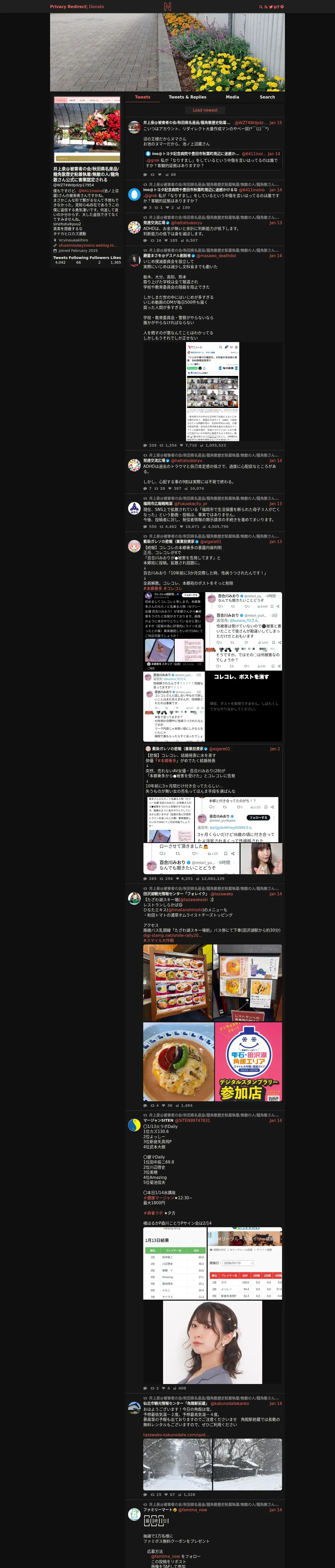 取得元URL: https://nitter.privacyredirect.com:443/WZT4Wdpdzp17954?cursor=DAAHCgABHAg9ShJ__0YLAAIAAAATMjAxMTY0MTM2MzY4NzkzMjI4MwgAAwAAAAIAAA