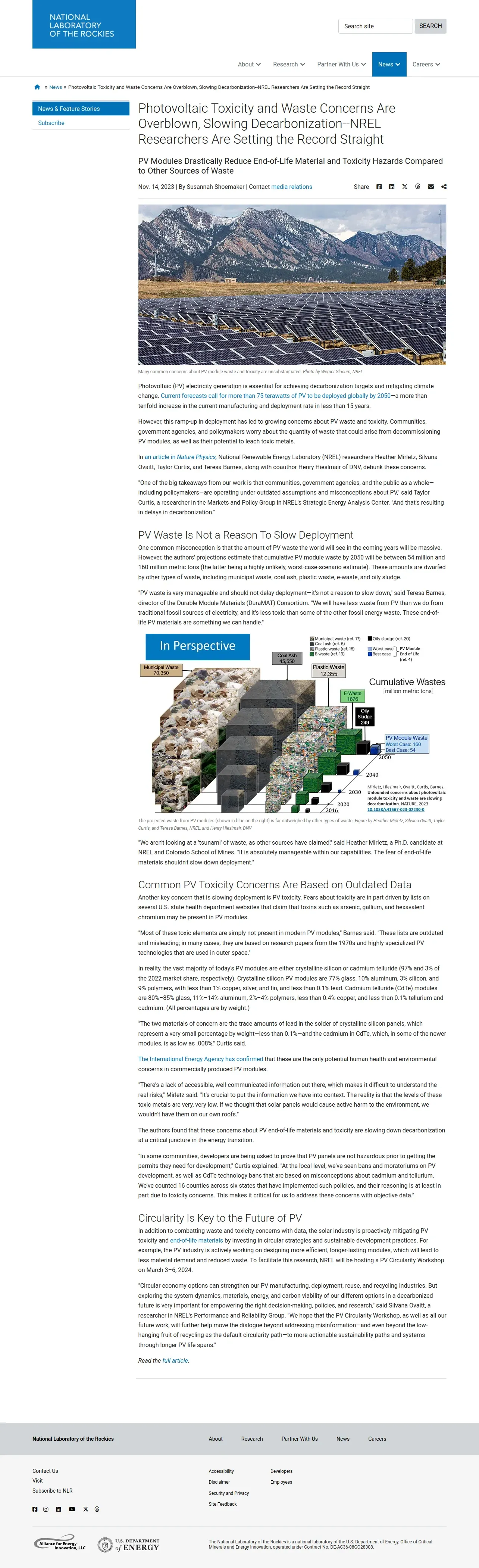 https://www.nlr.gov:443/news/detail/program/2023/photovoltaic-toxicity-and-waste-concerns-are-overblown-slowing-decarbonization