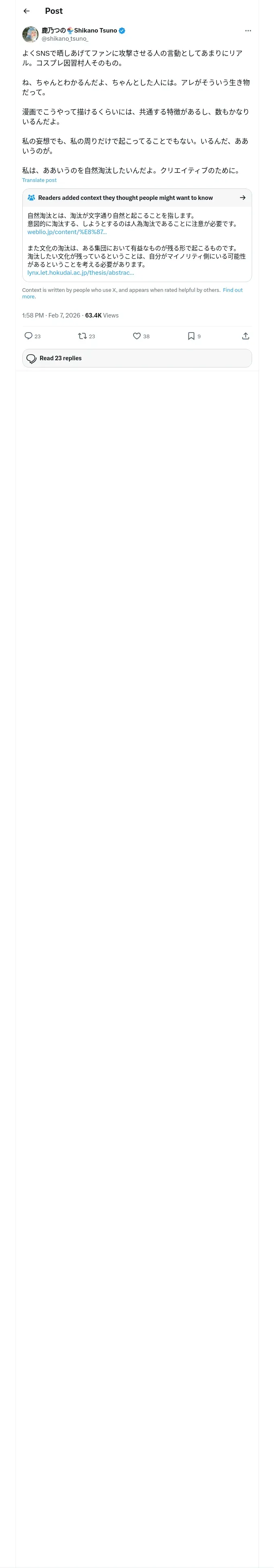 取得元URL: https://x.com:443/shikano_tsuno_/status/2019999066986561731